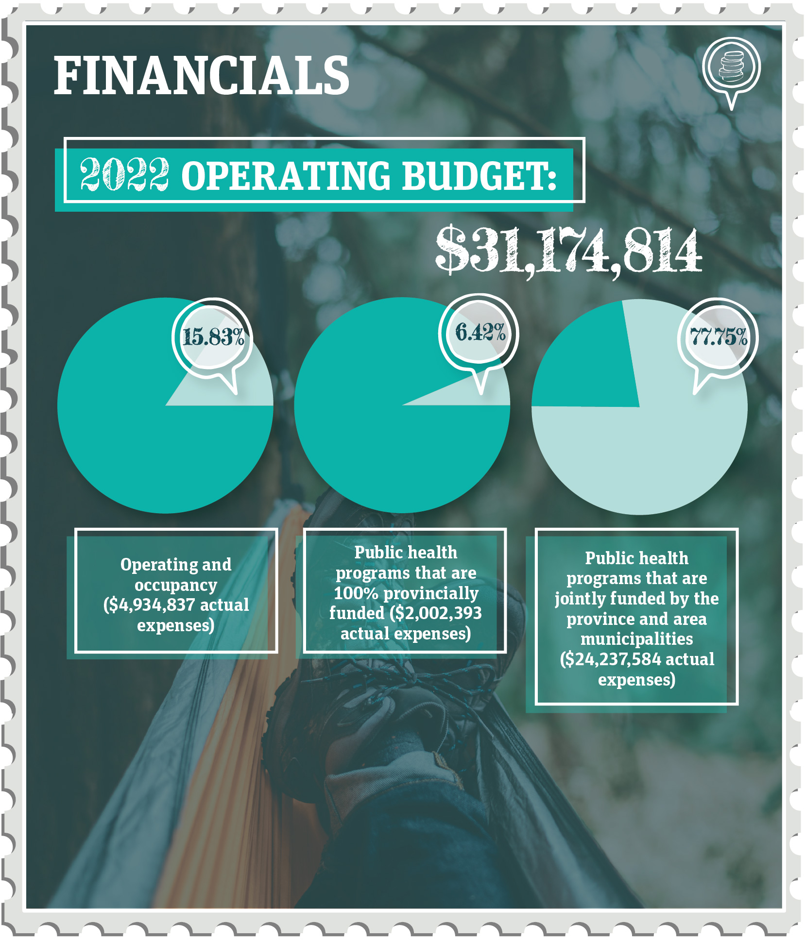- 77.75% public health programs jointly funded by the province and area municipalities ($24,237,584 actual expenses)