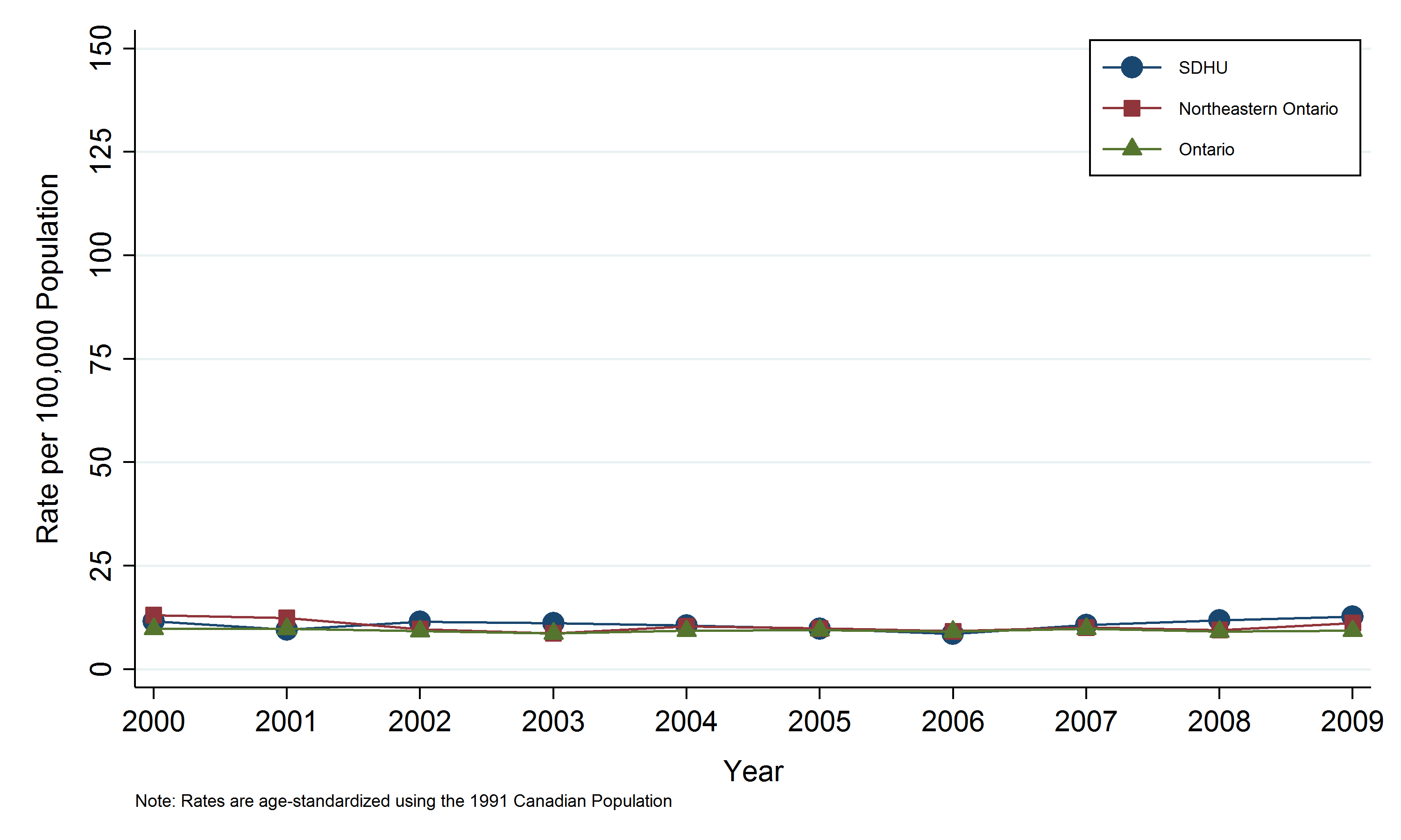 - Data Source: Ontario Cancer Registry and Population Estimates, Cancer Care Ontario, SEER*Stat, Oct. 2012 release.