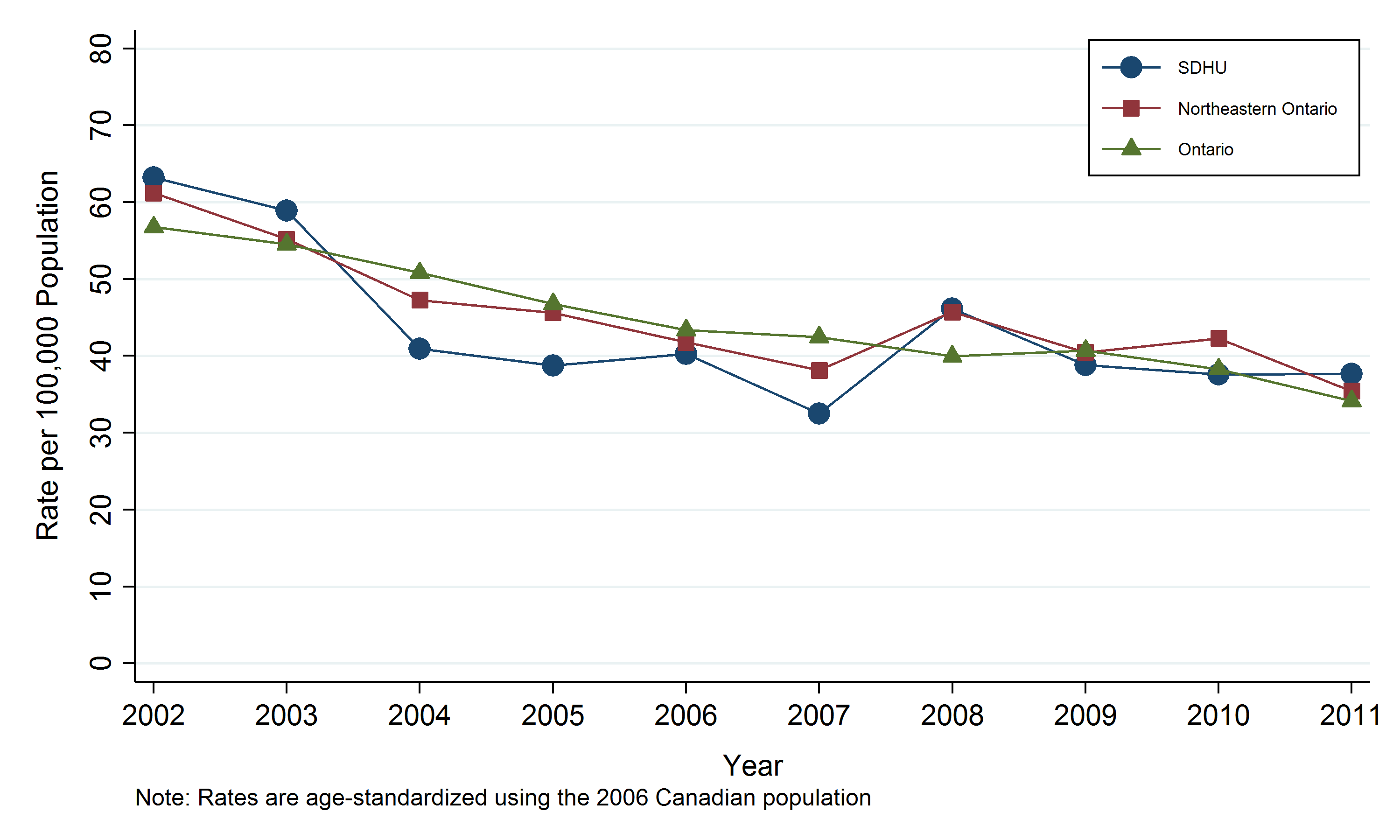 - Rates are age-standardized using the 2006 Canadian population.